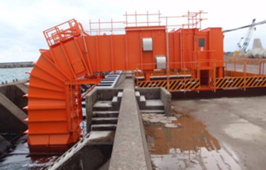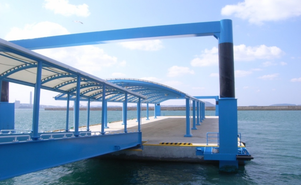 フェリー乗り場や防波堤、海中トンネルなど、海にまつわる施設を製作・架設しています。