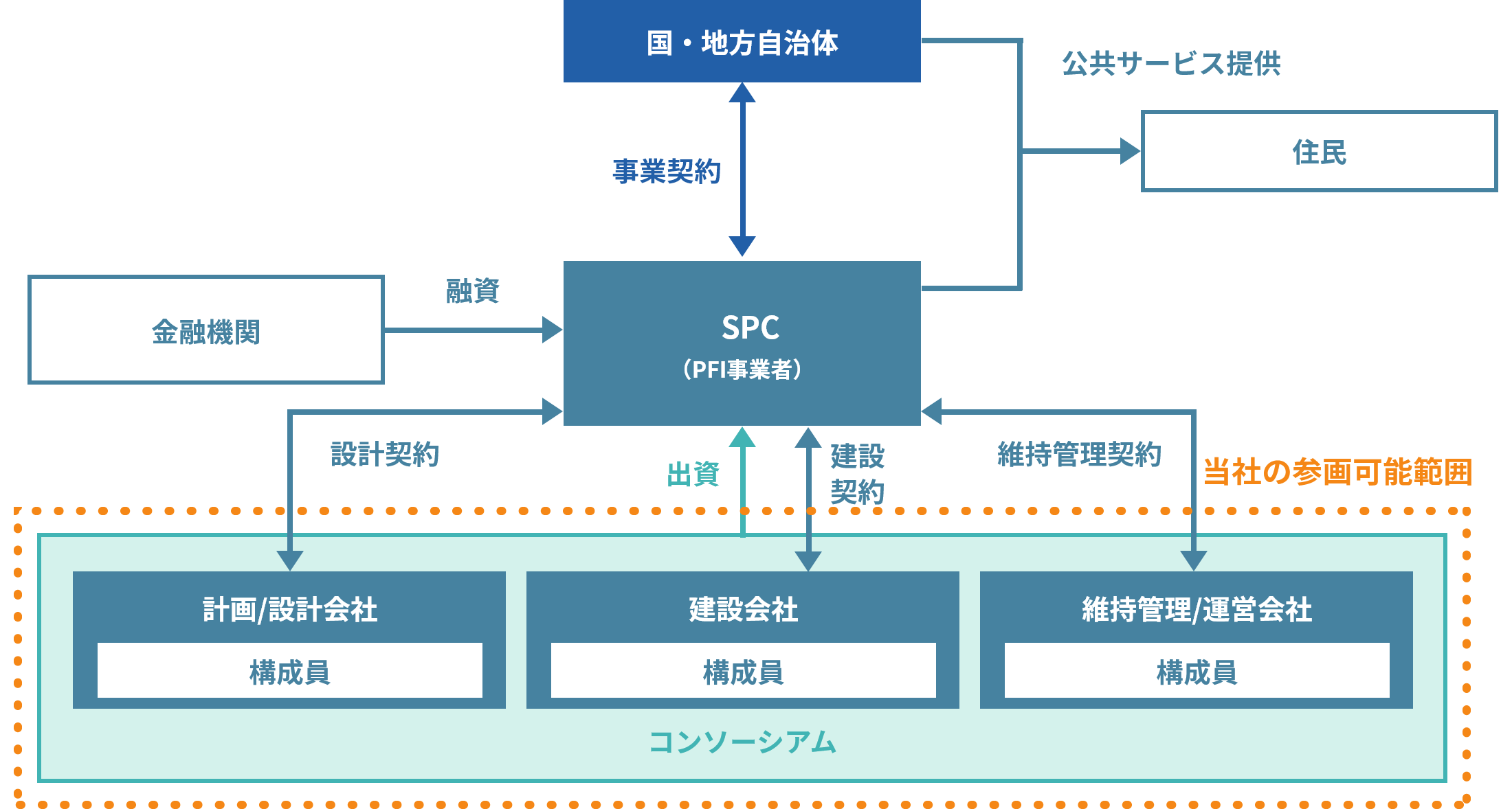 PFI法に基づき、公共施設等の建設、維持管理、運営等を民間の資金、経営能力及び