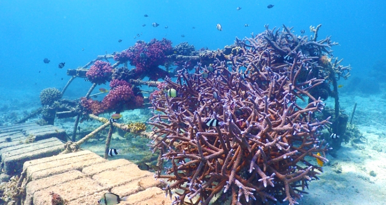 当社施工の浮桟橋にサンゴが自然に生育していることを発見