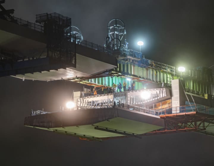 私たちの目標は無事故・無災害での工事完了と、震災から10年目の節目となる令和2年度内に宮城県内の三陸沿岸道路を開通させることでした。斜張橋という特殊構造物を海上で架設するという難易度の高いプロジェクトゆえに、その遂行に当たっては様々な問題の解決が必要となりました。しかし、私たちは構造条件や施工条件を踏まえた詳細な設計や架設検討を事前に行い、関係者全員が一丸となって施工を進めた結果、目標を達成することができました。