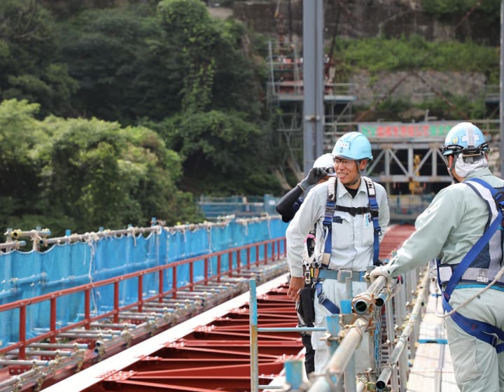 令和5年7月、南阿蘇鉄道全線運行再開のニュースを拝見し、地元の方々の喜ばれる姿に、自然災害の多い日本におけるインフラの重要性を再確認するとともに、その復旧作業に携わる会社に所属し復旧の一助になれたことに喜びを感じます。工事に携わった若手技術者は、得難い経験をするとともに今後の橋梁マン人生の糧となったことと思います。また、本工事にご協力頂いた協力会社の皆様が難工事に対し熱意ある姿勢で臨まれ、工期内に無事故無災害で工事を終えたことに対し感謝を申し上げます。