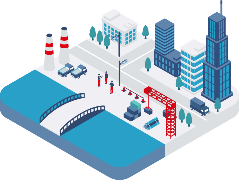 事業計画を立案するには、様々な調査や設計を行いますが、それを委託されるのが建設コンサルタントです。構造計算、材料特性、地震や風などの環境要因を考慮した設計ソリューションを提案します。