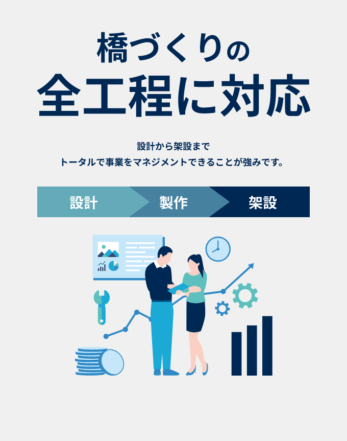 数々の名だたる橋梁を架設してきたエム・エム ブリッジ。 155年以上の歴史を支える「私たちの強み」をご紹介します。