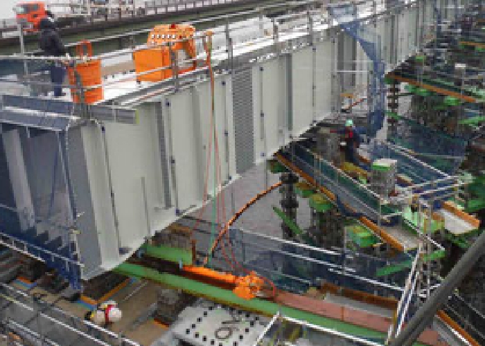 トラベラークレーンとは鋼製橋梁架設用に特別に開発された軽量型クレーンです。
