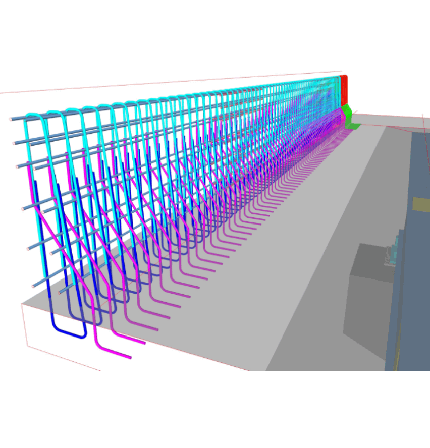 また、コンクリート床版・壁高欄の配筋図は難解であり、作図や確認に時間を要すため、床版配筋図のCIMモデルと2D図面を自動作図できるソフトを宮地エンジニアリング、オフィスケイワン、エム・エム ブリッジの3社共同で開発し実工事にて活用しています。
