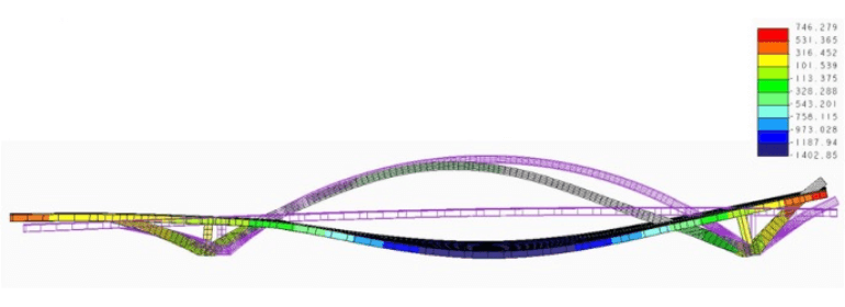 構造解析、振動モード解析、座屈解析などを用いて橋梁の安全性を検証します。