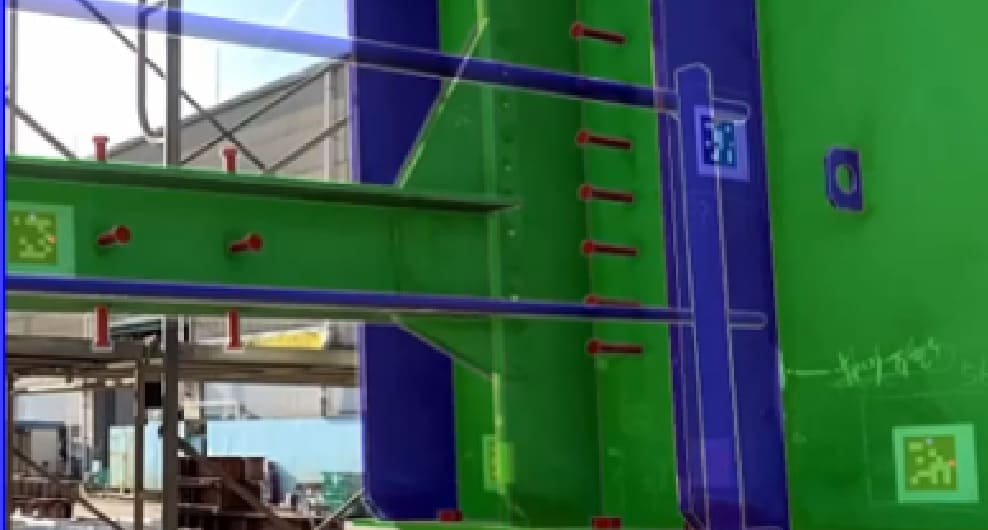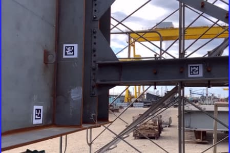 ARを用いて、実構造物上に3Dモデルを重ね合わせて、部材の配置確認や干渉確認を行う手法の検証・活用を行っています。